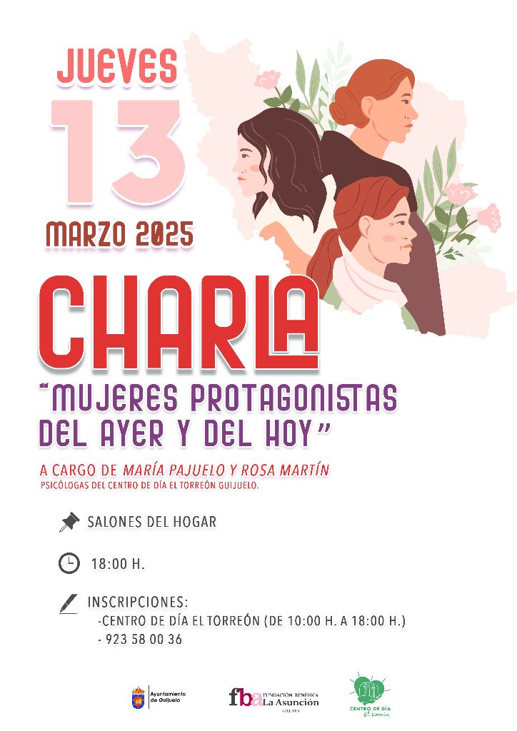 El título de la propuesta ‘Mujeres protagonistas del ayer y del hoy’ se llevará a cabo en el Hogar del Jubilado de Guijuelo y está organizada con la colaboración del Ayuntamiento de Guijuelo y La Fundación Benéfica La Asunción.