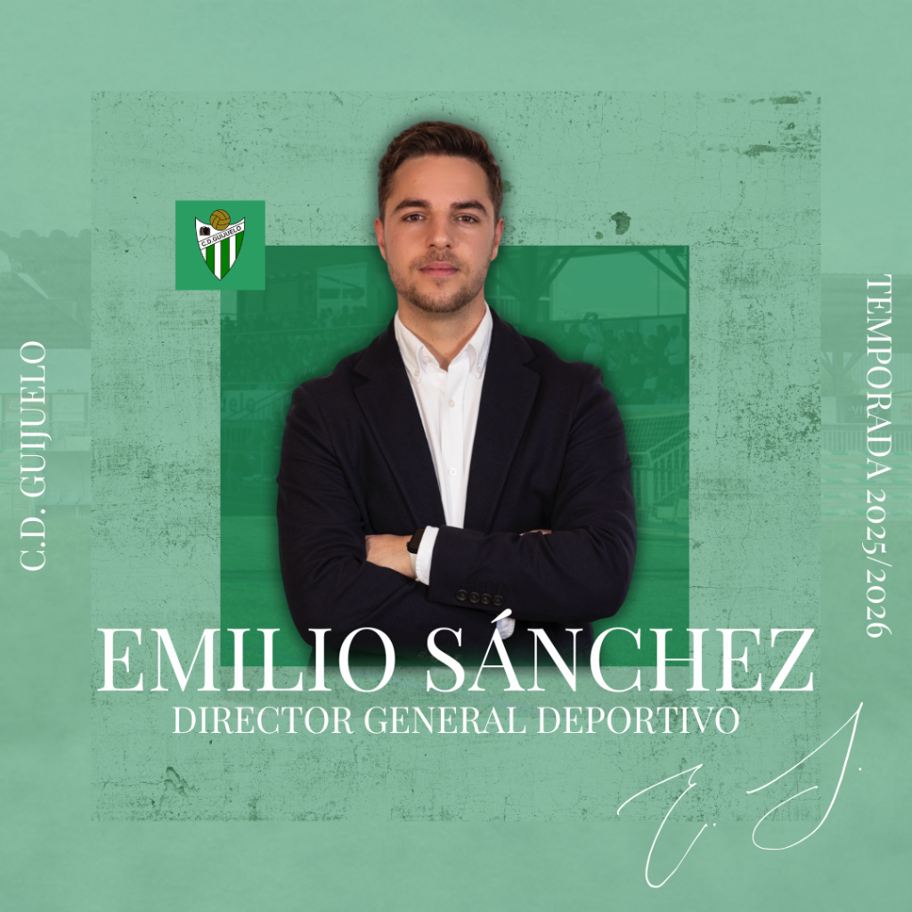 El C.D. Guijuelo ha anunciado la continuidad de Emilio Sánchez como Director General de la entidad, ampliando además sus funciones a la Dirección Deportiva de cara a la temporada 2025/2026. A partir de este momento Sánchez, pasará a desempeñar el cargo de Director General Deportivo, asumiendo de forma conjunta las responsabilidades de gestión general y planificación deportiva del club.