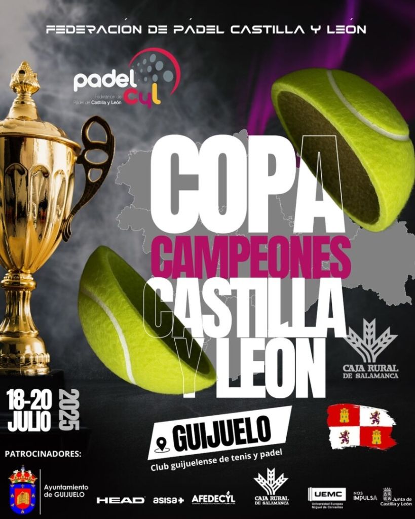 Por primera vez en la historia, se disputará la Copa de Campeones de Castilla y León, organizada por la Federación de pádel de Castilla y León en colaboración con el Ayuntamiento de Guijuelo.