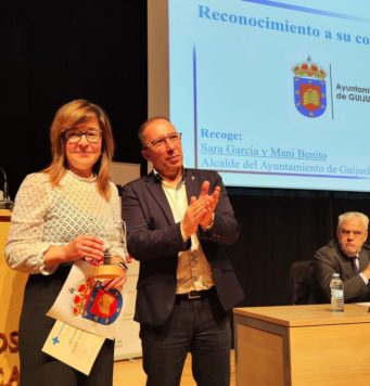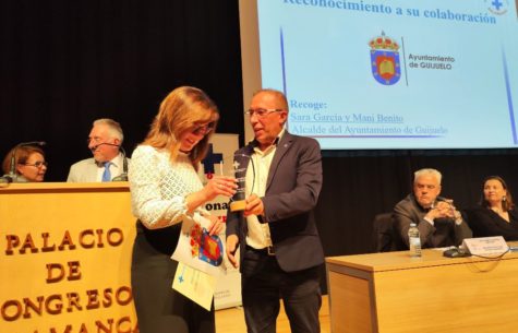 Sara García, concejal del Ayuntamiento de Guijuelo recogió el reconocimiento del municipio de Guijuelo como colaborador distinguido por el fomento y la difusión de las jornadas de donaciones en la localidad.