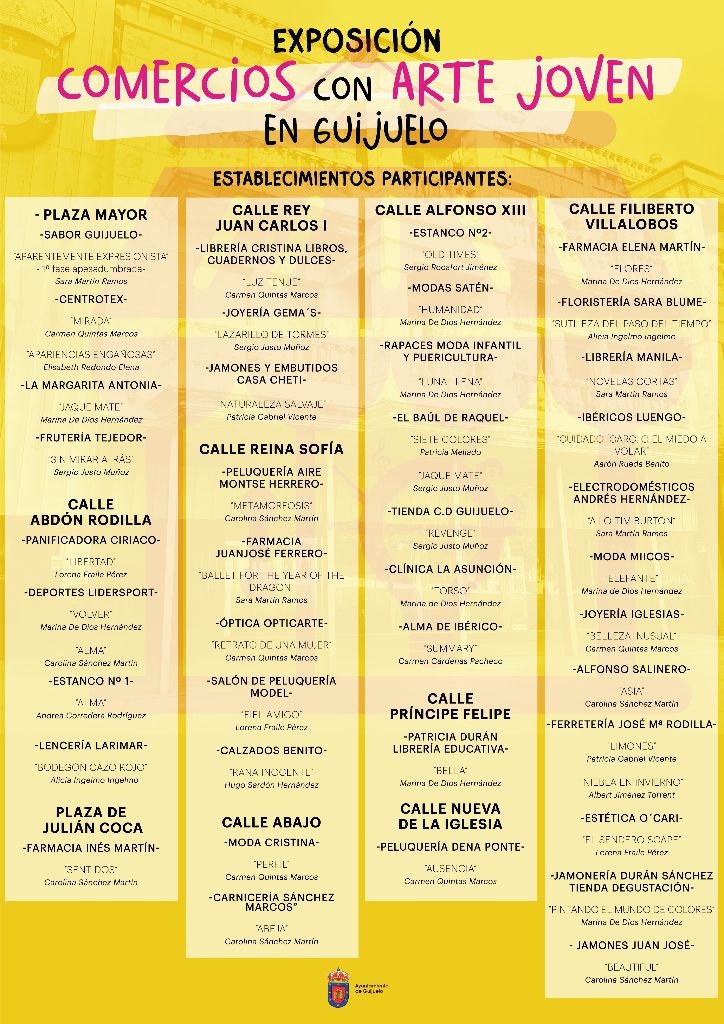 Desde hoy y hasta el próximo 6 de junio un total de 40 comercios de Guijuelo exponen en sus escaparates las obras más destacadas de concurso anual de Jóvenes Talentos, en total, 44 obras.