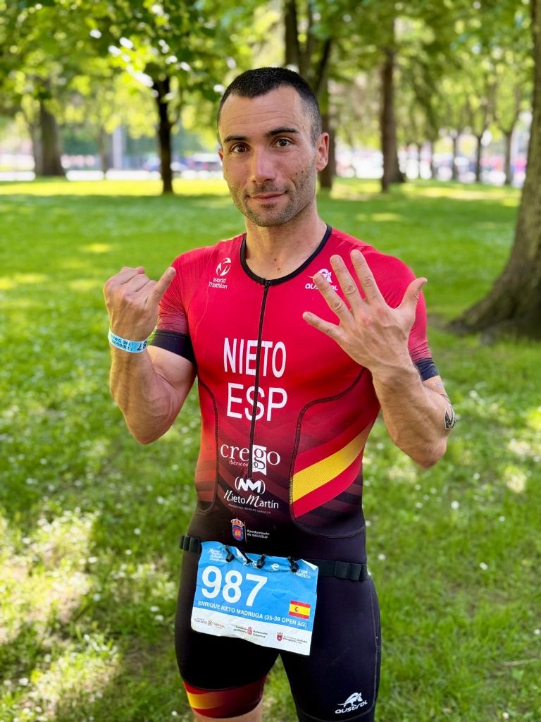 Enrique Nieto ha finalizado en sexta posición en el Campeonato de Europa de Aquabike de Media Distancia Masculina Pamplona-Iruña, en la categoría 35 a 39. Completó los 1,9 km nadando y 85 km en bicicleta en un tiempo de 3:13:13 para ser el sexto mejor en categoría y el tercer español.