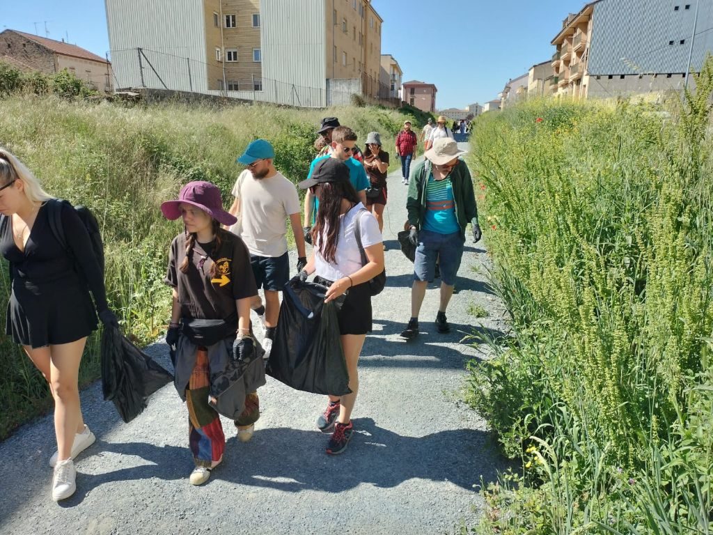 Una ruta plogging es un movimiento global que combina los deportes con el cuidado medioambiental y en Guijuelo, 30 participantes del programa Erasmus+, de la Asociación 217 Sur se encargan, junto al Centro Joven, de recoger basura por el entorno del Camino Natural – Vía Verde.