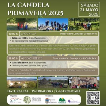 Y el sábado, se llevarán a cabo dos citas: por la mañana en Lagunilla, un paseo entre castaños centenarios, también una visita cultural por el pueblo, degustación de vino DOP Sierra de Salamanca y productos locales. Por la tarde, Aldeacipreste, ‘Trashumancia: paseo por la Cañada Real’, desde las 18 horas.