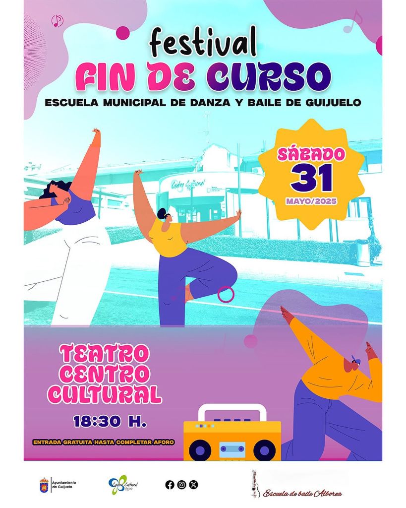 Este sábado y como cierre a la agenda cultural de este mes, el Teatro acogerá el Festival fin de curso de los alumnos de la Escuela Municipal de Danza y Baile de Guijuelo. La cita comenzará a las seis y media y es gratuita.