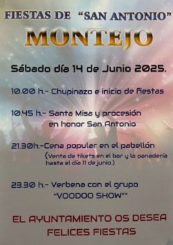 Los vecinos de Montejo cuentan el sábado con un amplio programa de actividades para honrar a San Antonio, organizadas por el Ayuntamiento de la localidad.