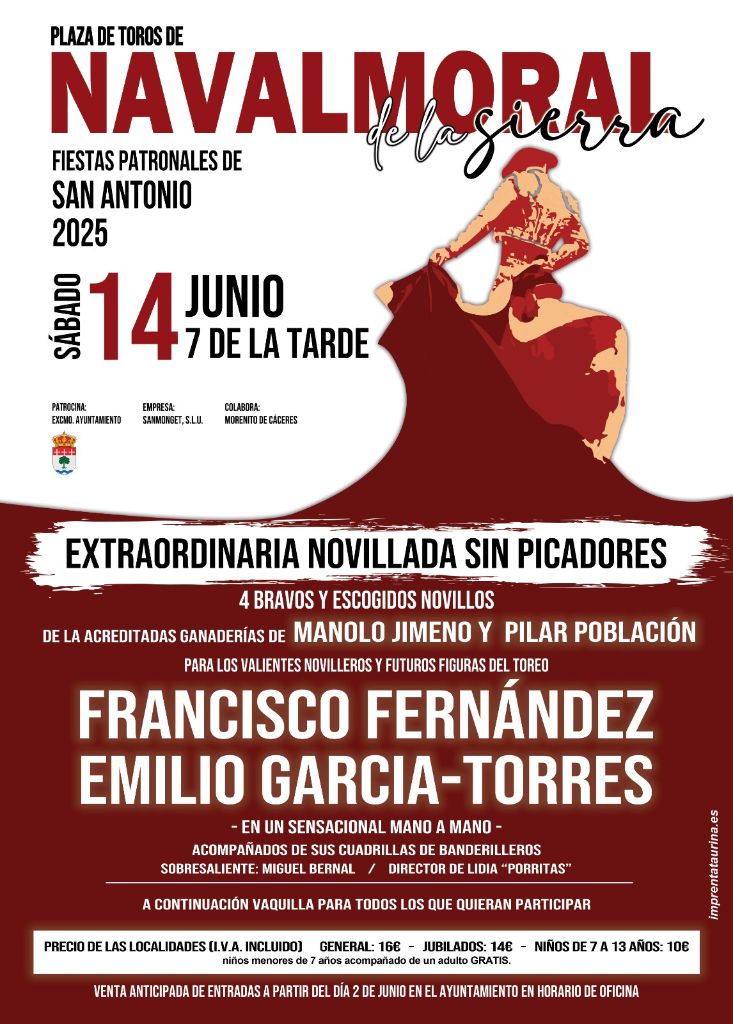 Además, Porritas de Guijuelo acompañará a Emilio García-Torres en la novillada sin picadores que tendrá lugar el sábado en Navalmoral de la Sierra.