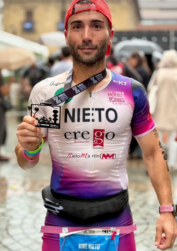 Este sábado, el guijuelense, Kike Nieto viajaba hasta tierras vascas para darse cita en el Triatlón de Media Distancia TradeINN Zarauzko Triatloia 2025. Completó los 2,8 km de natación, 80 km en bicicleta y 20 km a pie con una marca de 4:49:34, para ser el 256 en la general y el 156 de su categoría.