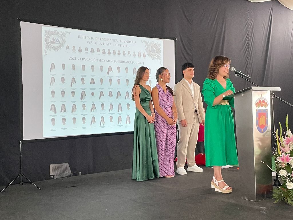 Las graduaciones de los alumnos de 4º de la ESO del IES Vía de la Plata se han celebrado en este 2025 en el recinto ferial de Guijuelo y en el que ha contado con la participación del concejal de Educación, Sara García.