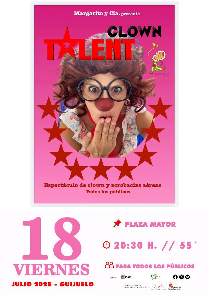 También el teatro destaca este mes con la propuesta en la plaza Mayor de Guijuelo, ‘Clown Talent’, por Margarito y Compañía quienes actuarán el viernes 18 desde las 20:30h.