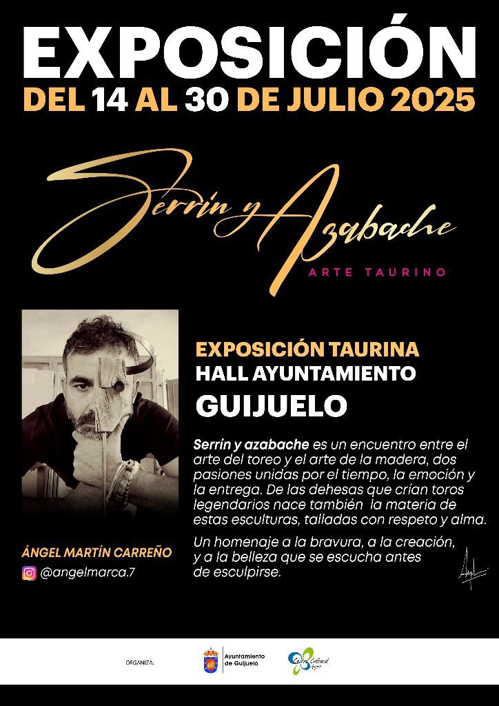 Por otro lado, del 14 al 30 de julio el hall del Ayuntamiento acogerá la exposición ‘Serrín y azabache’, una muestra taurina a cargo de Ángel Martín Carreño, artista que recientemente ha expuesto en la pasada Feria de San Isidro en Madrid.