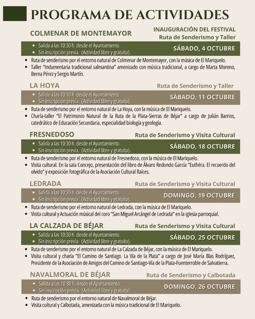 Por último, el Festival La Candela continúa este fin de semana con dos citas: la de Fresnedoso para mañana con una ruta senderista por el entorno natural de la localidad, visita cultural, la presentación del libro ‘Euthéra. El recuerdo del olvido’ y una exposición de fotografías de la asociación cultural Raíces.
