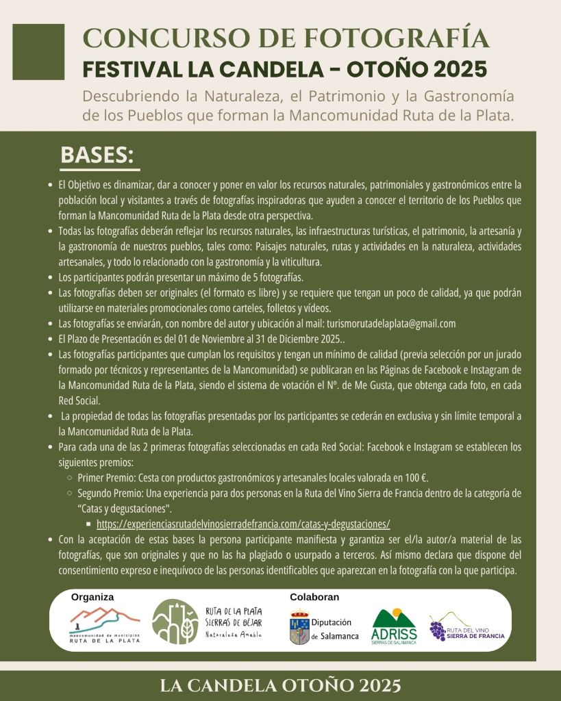 Y, por otro lado, hasta finales de diciembre estará abierto el plazo para presentar imágenes y participar en el concurso de fotografía del Festival La Candela Otoño 2025.