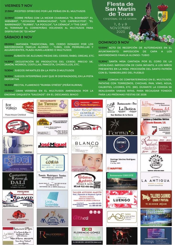 Matanza tradicional, correpeñas, recital de flamenco, además de comidas de confraternidad y eucaristía para honrar a San Martín en Cristóbal.