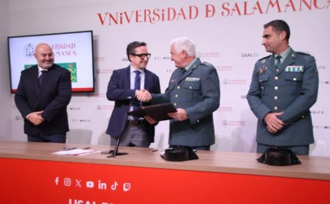 La Guardia Civil de Salamanca y la Universidad de Salamanca, la Usal, han firmado un protocolo general de actuación en materia de formación e investigación, en el que han participado el Teniente Coronel de la Guardia Civil de Salamanca, Arturo Marcos, el General Jefe de la Zona de la Guardia Civil de Castilla y León, Miguel Sánchez y el rector de la Universidad, Juan Manuel Corchado.