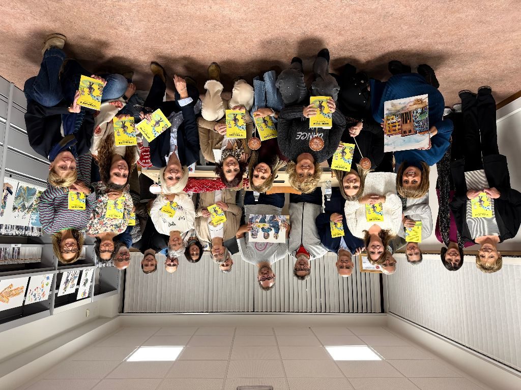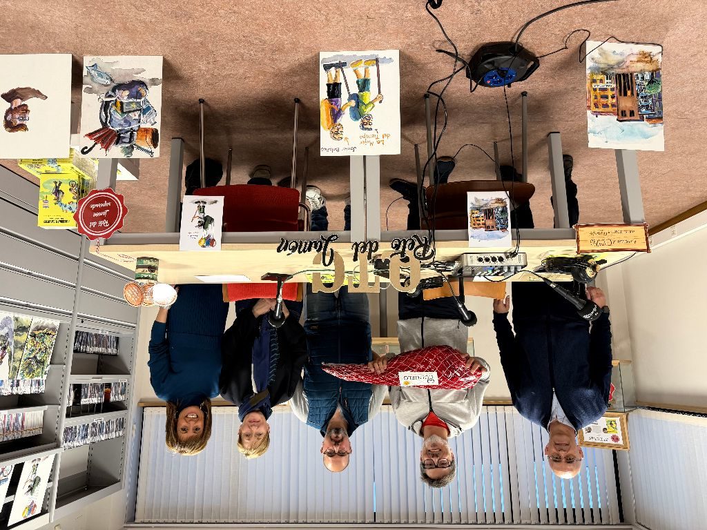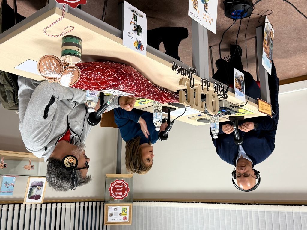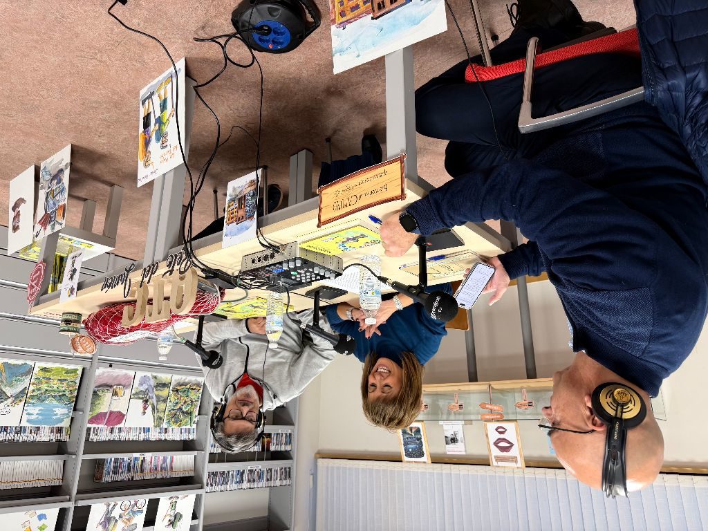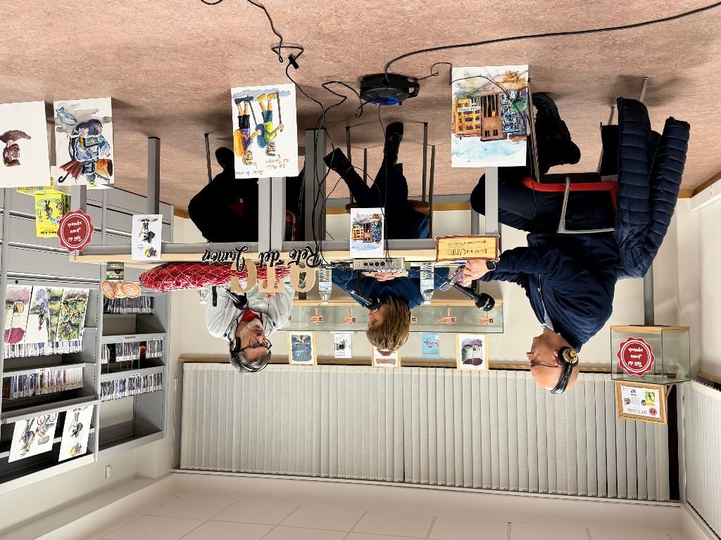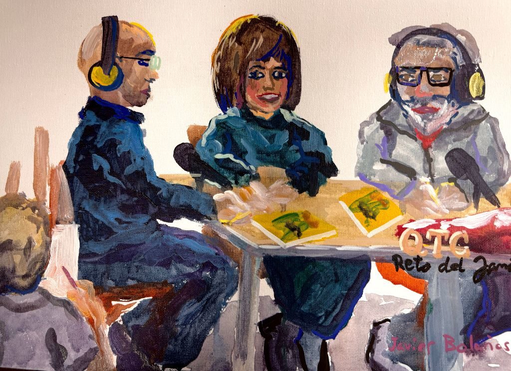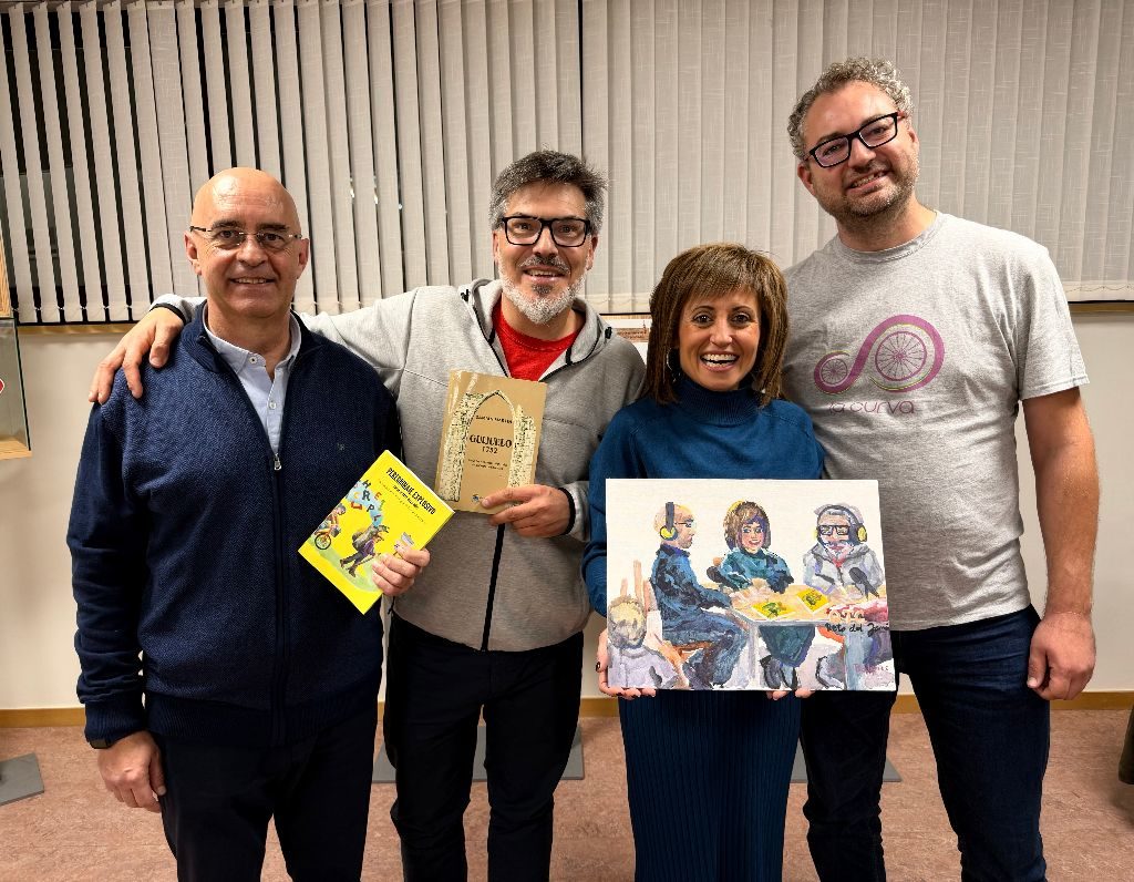 La sala de Audiovisuales de la Biblioteca Municipal de Guijuelo acogió la presentación de la novela ‘Peregrinaje explosivo’ en la que los guijuelenses podrán encontrar un fragmento donde el jamón de Guijuelo vuelve a ser protagonista, además de una forma novedosa, ya que se incluye una ilustración original de Javier Bolaños, quien, además participó en la jornada pintando en directo un retrato de la emisión del programa Qué Te Cuentas.