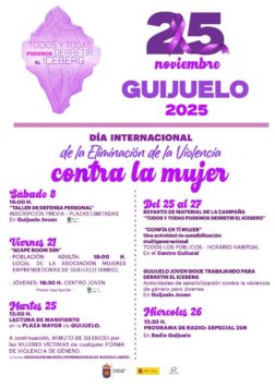 El 25 de noviembre se conmemora el Día de la Eliminación de la Violencia contra la mujer y desde la concejalía de Igualdad se ha presentado un programa que se llevará a cabo en diferentes entornos de Guijuelo.