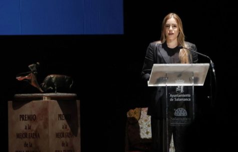 La asociación Taurina de Guijuelo, de mano de su presidente Javier Gómez, entregó el III trofeo al triunfador de la novillada a Olga Casado, quien protagonizó un cartel único femenino junto a Léa Vicens y Raquel Martín el pasado mes de septiembre.