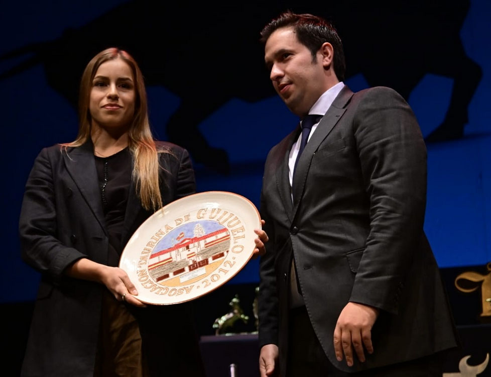 La asociación Taurina de Guijuelo, de mano de su presidente Javier Gómez, entregó el III trofeo al triunfador de la novillada a Olga Casado, quien protagonizó un cartel único femenino junto a Léa Vicens y Raquel Martín el pasado mes de septiembre.