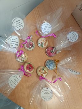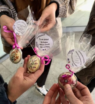 La asociación de mujeres emprendedoras de Guijuelo, Ameg han colaborado con la elaboración de una planta en colores morados, representativos de este día y con materiales reciclados, además de entregar un detalle a cada uno de los participantes.
