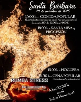 Este sábado, a partir de las tres de la tarde los vecinos de Pizarral compartirán una comida popular, a la que seguirá la celebración de Santa Bárbara con una eucaristía y procesión.