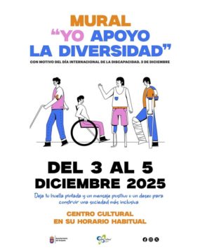 Por otro lado, si se acercan en el horario habitual del Centro Cultural, podrán participar en el mural ‘Yo apoyo la diversidad’, con motivo del Día internacional de las capacidades diferentes.