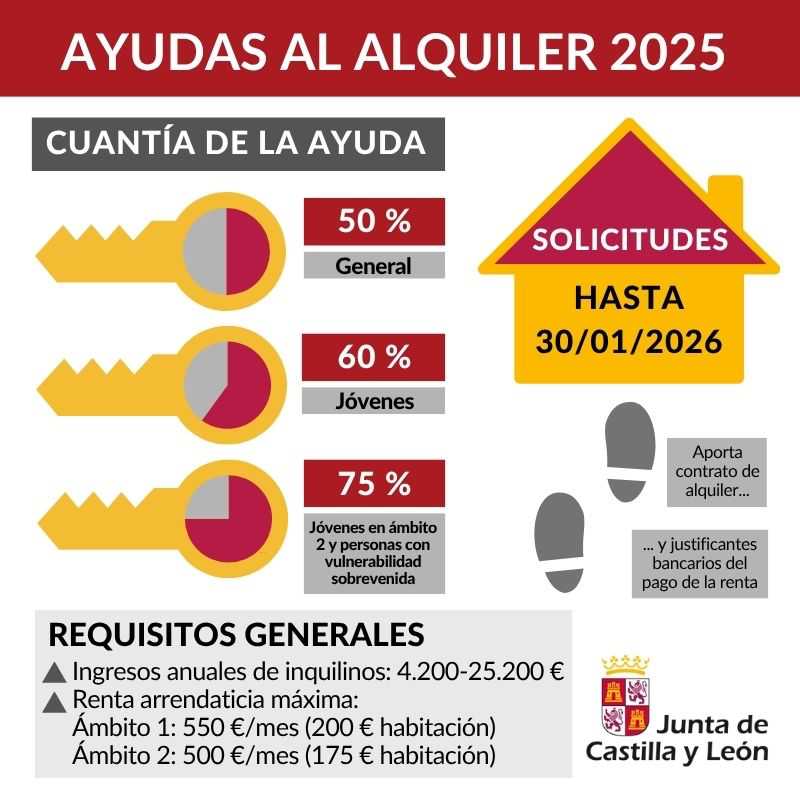 Hasta el 30 de enero de 2026 estará abierta la convocatoria Ayudas al alquiler 2025, destinadas a los arrendamientos de viviendas, habitaciones en régimen de alquiler o de cesión de uso y que estén ubicadas en la Comunidad.