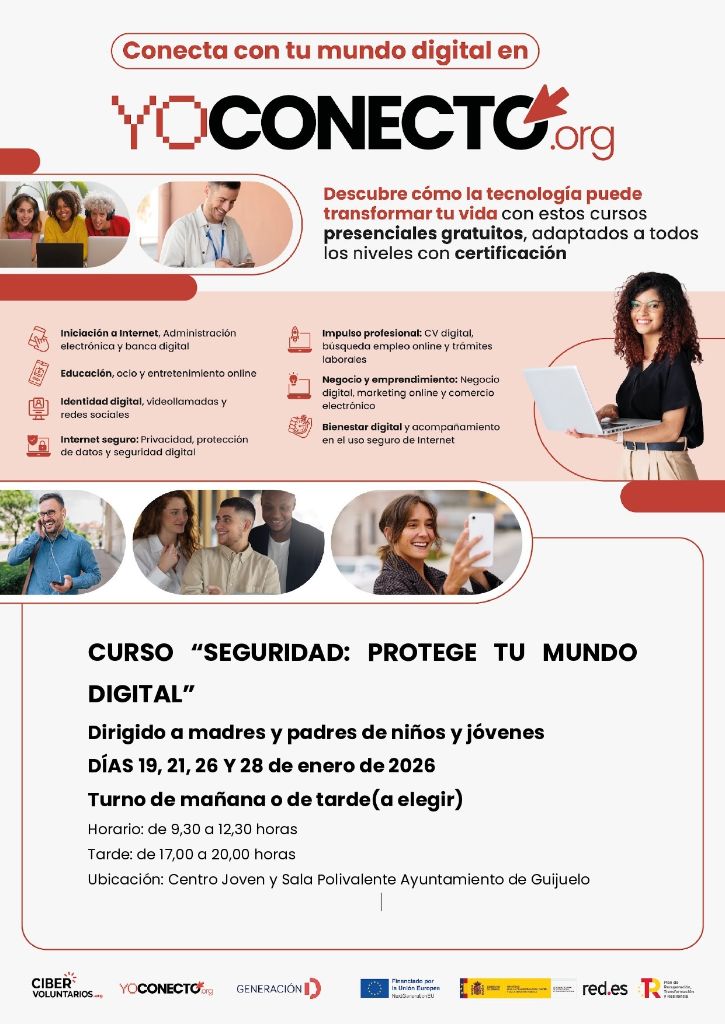 Este nuevo curso llega de la mano de YoConecto, una iniciativa impulsada por Fundación Cibervoluntarios, que forma parte Generación D impulsada por Red.es, Ministerio para la Transformación Digital y de la Función Pública, y financiado por el Plan de Recuperación, Transformación y Resiliencia, a través de los fondos Next Generation de la Unión Europea.