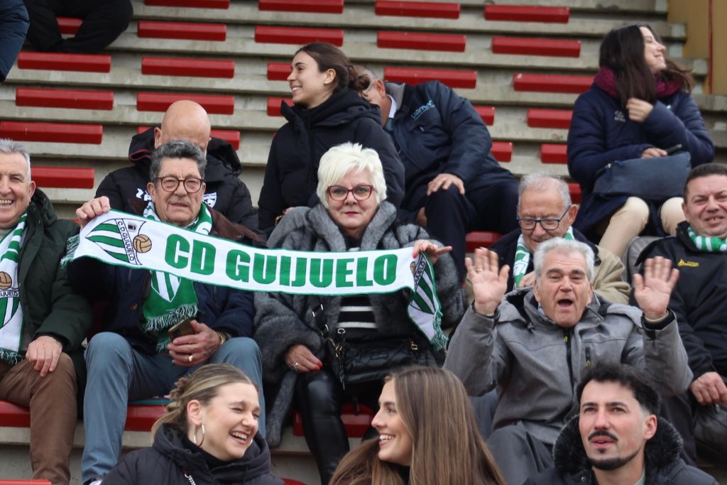 En este tipo de partidos fuera de casa y ante un rival directo el poder contar con la afición es un importante aliciente y los aficionados del Guijuelo completaron el primer viaje organizado de la temporada. Un autobús y un buen número de desplazamientos particulares ofrecieron en la grada y a pie de campo un buen ambiente de fútbol, en el que el verde guijuelense se dejó ver. Cerca de un centenar de aficionados del Guijuelo vivieron en directo el partido en Las Salinas.