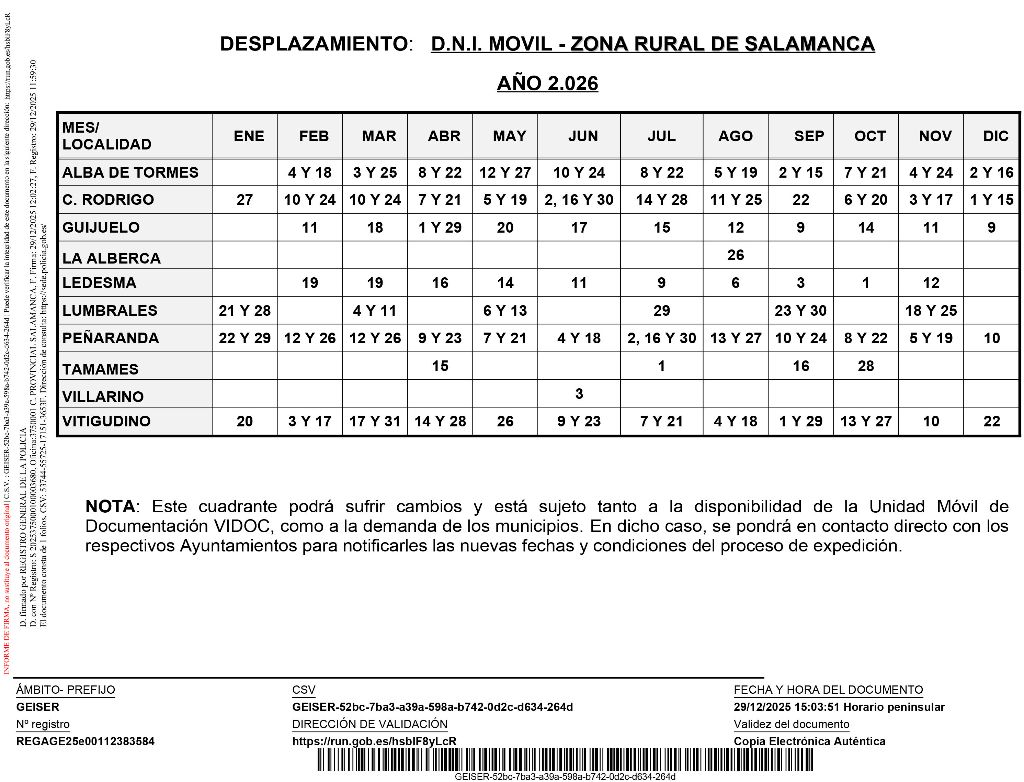 La Comisaría provincial de la Policía Nacional ha publicado el calendario con las citas para renovar el Documento Nacional de Identidad este año en Guijuelo.