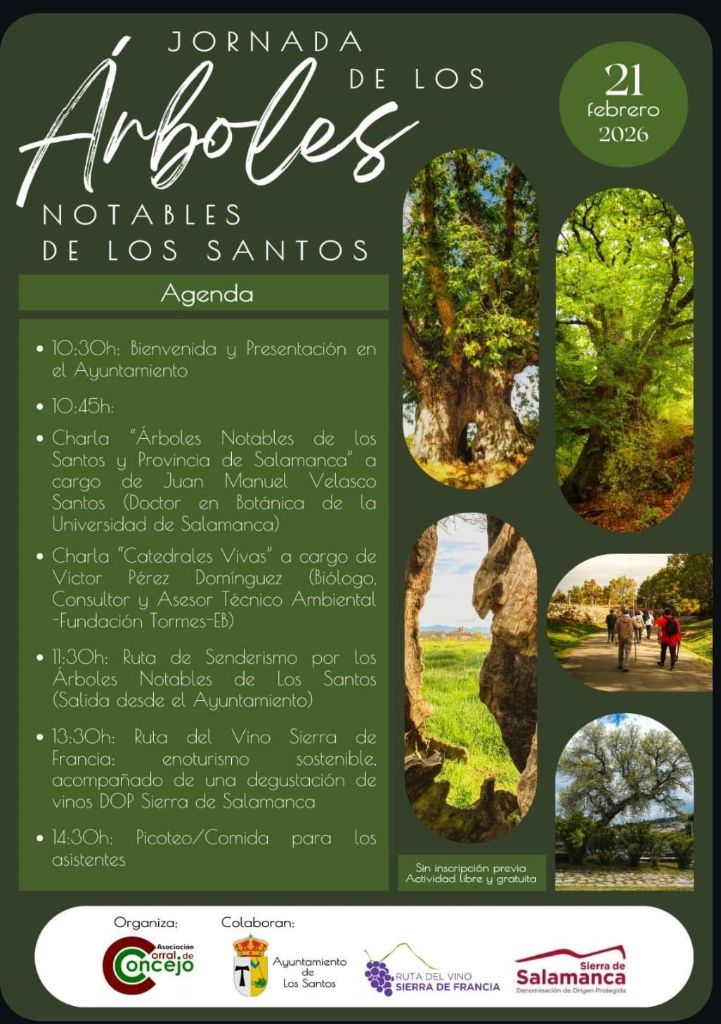 El programa también incluye una ruta de senderismo por los árboles notables de Los Santos y la actividad de enoturismo sostenible con una degustación de vinos DOP Sierra de Salamanca.