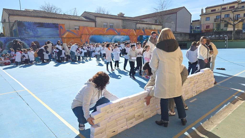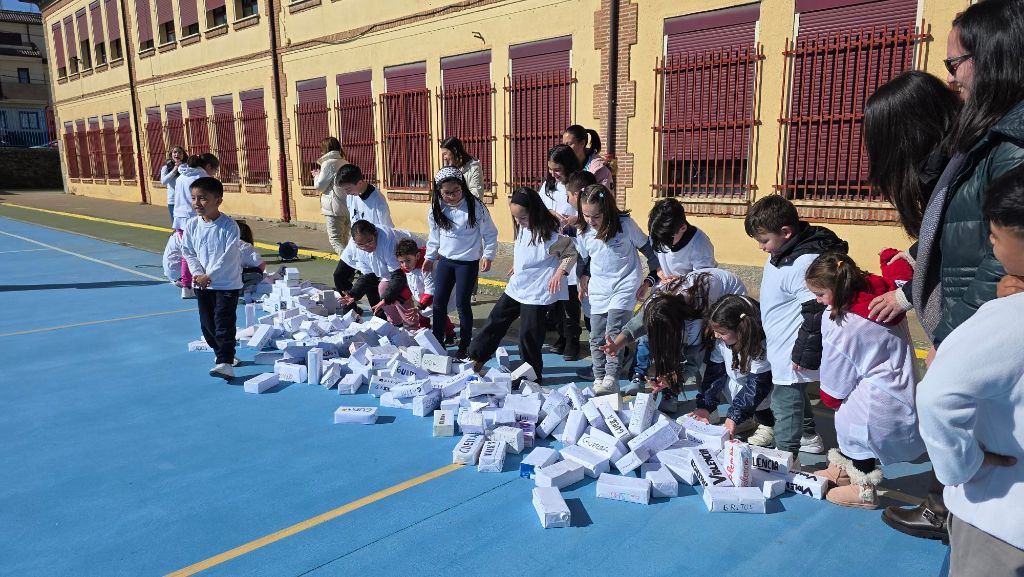 En la cita de esta mañana los alumnos han ‘derribado’ un muro realizado con bloques reciclados decorados con conceptos inapropiados, para de esta manera eliminar malos hábitos sociales, con la participación de la concejala de Educación, Sara García.