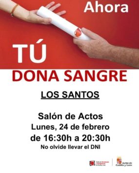 El próximo lunes, 24 de febrero, un equipo de la Hermandad de Donantes de Sangre de Salamanca visitará Los Santos para recibir a todos aquellos vecinos que quieran donar sangre.