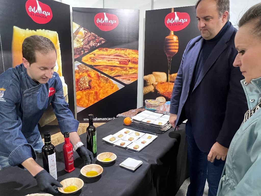 Los asistentes a esta primera tarde de feria pudieron disfrutar de una degustación de Mexican-tacos Ibéricos a cargo del chef Sergio Fernández con los alumnos de la escuela de hostelería de Madrid y a lo largo de todo el fin de semana se han llevado a cabo talleres para niños, como ‘Cocinando con Salamanca en Bandeja’, con Viró Gastrobar, y para los adultos, ‘Descubre la Ruta del Vino Sierra de Francia a través de una cata con la bodega El Robledo’. Además, los visitantes también han podido degustar productos locales, regionales y nacionales: empanadas, vermut La Rana Charra de Guijuelo, ibéricos, licores y vinos.