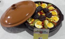 El tercer premio fue para Mª Antonia Díaz con el plato ‘Huevos a la guijuelense’ que consiguió 238 puntos y un lote de ibéricos donado por José Antonio García, además de dos botellas de vino de Pinhel.