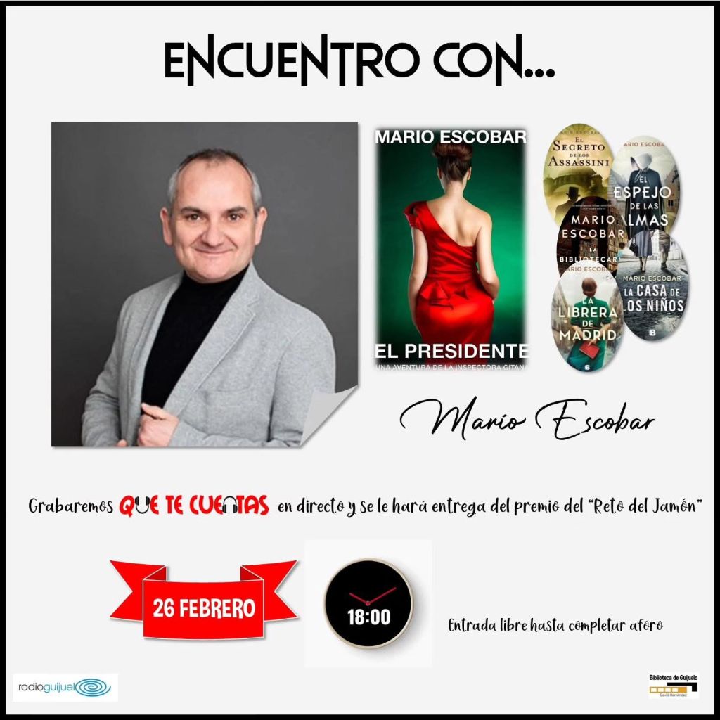 El Ayuntamiento de Guijuelo entregará a Mario Escobar su galardón, además el escritor compartirá una tarde de emisión del programa QTC con Damián Martín y Yoana Izquierdo en la Biblioteca Municipal David Hernández, donde dará detalles de ‘El presidente’, su última publicación en la que, de nuevo, leeremos sobre el jamón de Guijuelo. La cita literaria comenzará a las 18 horas en la sala de audiovisuales de la Biblioteca y está abierta a todo el público.