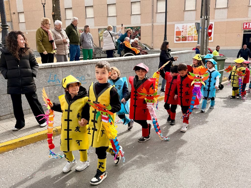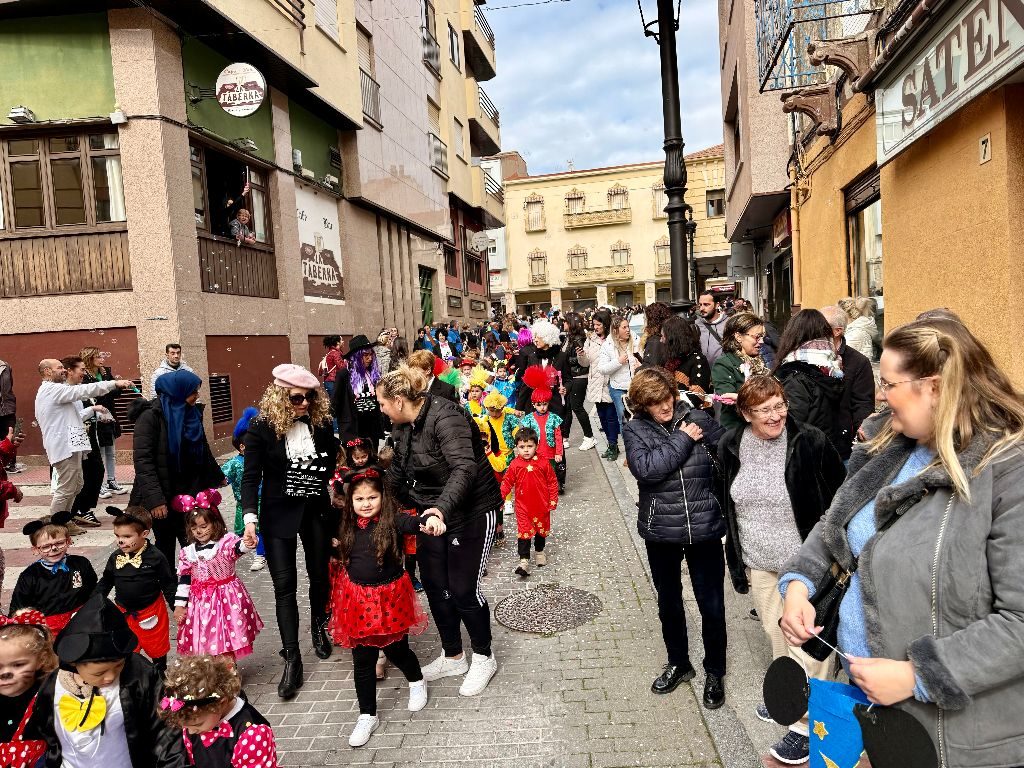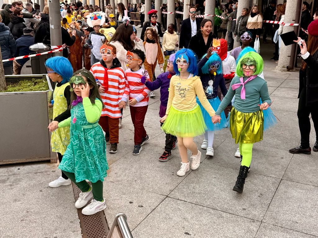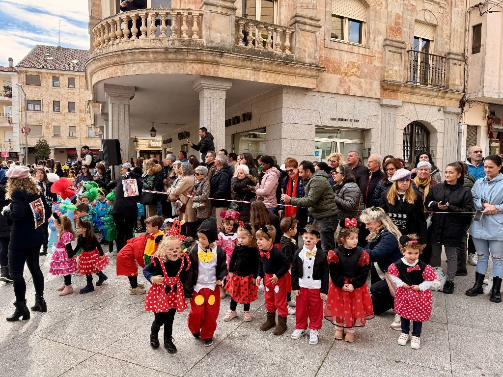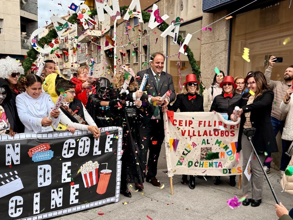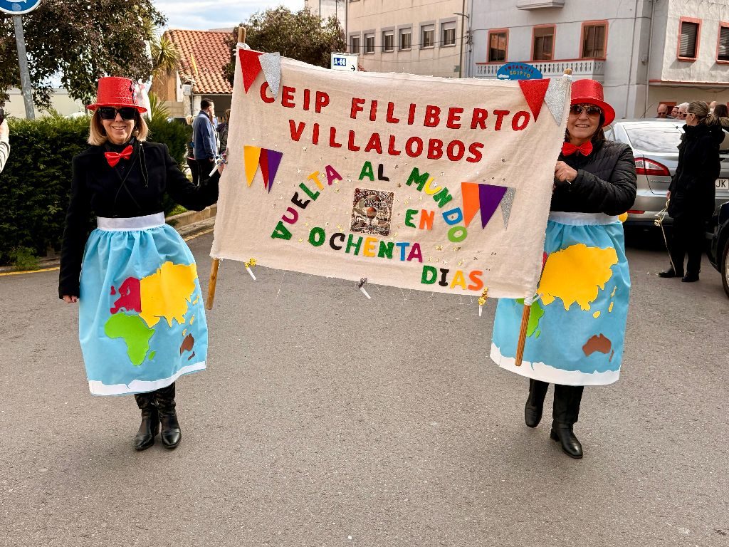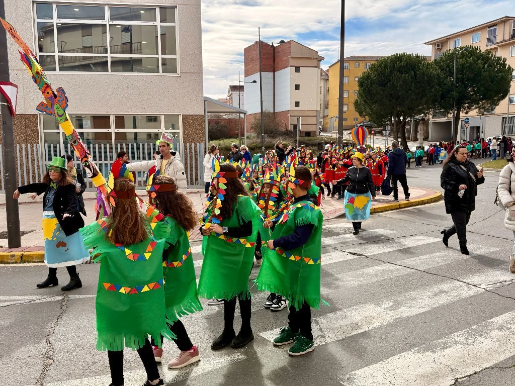 Las calles de Guijuelo se han llenado de disfraces, color y magia en el desfile escolar de esta mañana donde los dos colegios del municipio han lucido sus trajes, cada uno con su temática particular: Filiberto Villalobos con La Vuelta al Mundo en 80 días y Miguel de Cervantes, el cine.