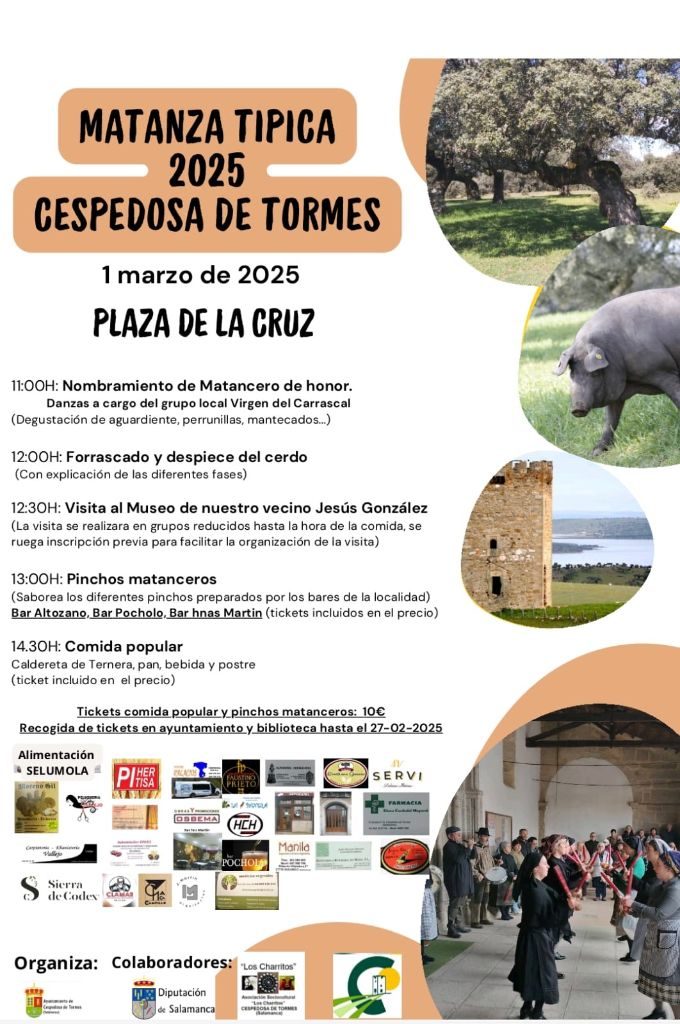 La plaza de la Cruz en Cespedosa acogerá este sábado de Carnaval la celebración de la fiesta de la Matanza desde las once de la mañana con las danzas, a cargo del grupo local Virgen del Carrascal y la degustación de aguardiente y mantecados, despiece del cerdo y la comida de matanza.
