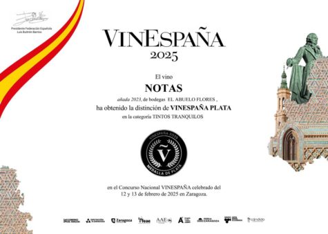 En la pasada edición del concurso Nacional Vinespaña celebrado en Zaragoza se ha reconocido al vino ‘Notas’ de la Bodega El Abuelo Flores con la medalla de plata.
