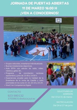 Les recordamos, además que del 14 de marzo al 31 de marzo comenzará el proceso de admisión del alumnado de Educación Infantil, Educación Primaria y Educación Secundaria Obligatoria, además de Bachillerato y los programas de Formación para la Transición a la Vida Adulta.