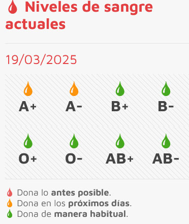 Actualmente, los grupos de sangre A+ y A- necesitan donaciones en los próximos días, pero siempre son necesarias donaciones para aumentar las reservas del Hospital.