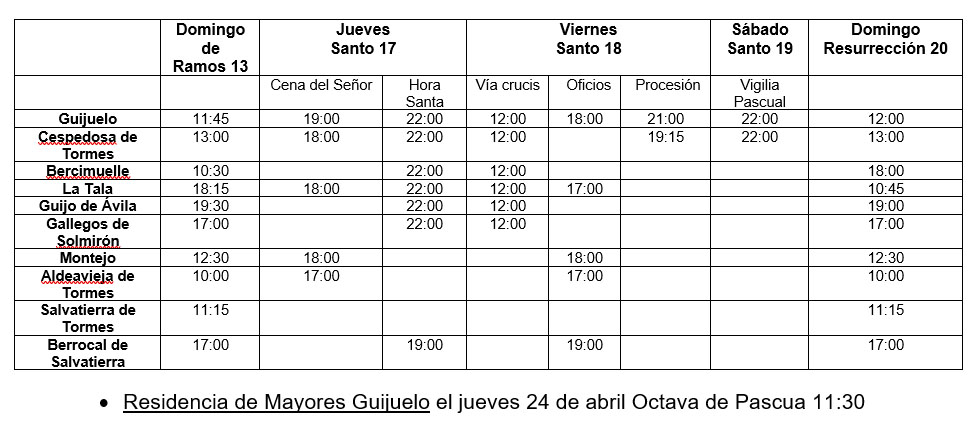 Les dejamos los horarios de las misas en Guijuelo y Comarca.