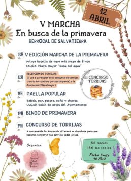 También este sábado está prevista la marcha ‘En busca de la primavera’ en Berrocal que incluye una ruta senderista, paella, bingo primaveral y concurso de torrijas.