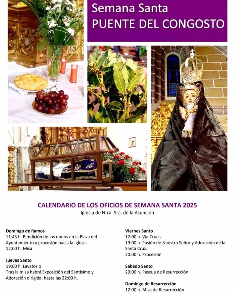 Puente del Congosto se suma a las celebraciones de Semana Santa con citas jueves, viernes y domingo, destaca la Procesión el viernes a las 20:00h. En Nava de Béjar, el domingo a las 12:15h tendrá lugar la Procesión del Encuentro.