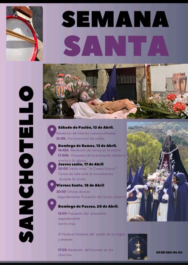 En Sanchotello, el jueves se oficia la santa misa In Coena Domini, el viernes los oficios divinos y el domingo la Procesión del Encuentro.