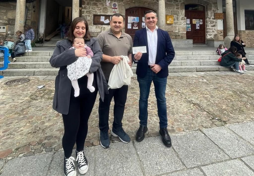 Para apoyar a las familias que se asientan en la localidad y amplían el número de miembros, el Ayuntamiento ha entregado a la familia de Valentina un Cheque Bebé con 300 euros, así como un regalo, en forma de lote de productos locales, que recibieron los padres de la nueva vecina de San Esteban.