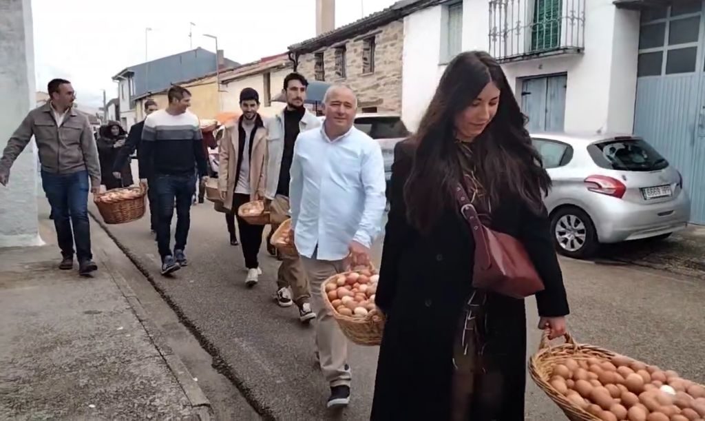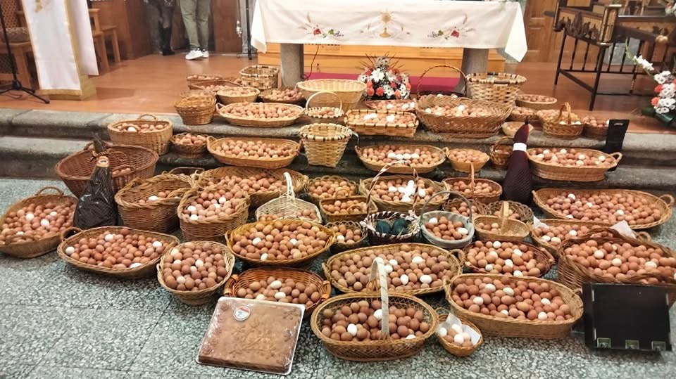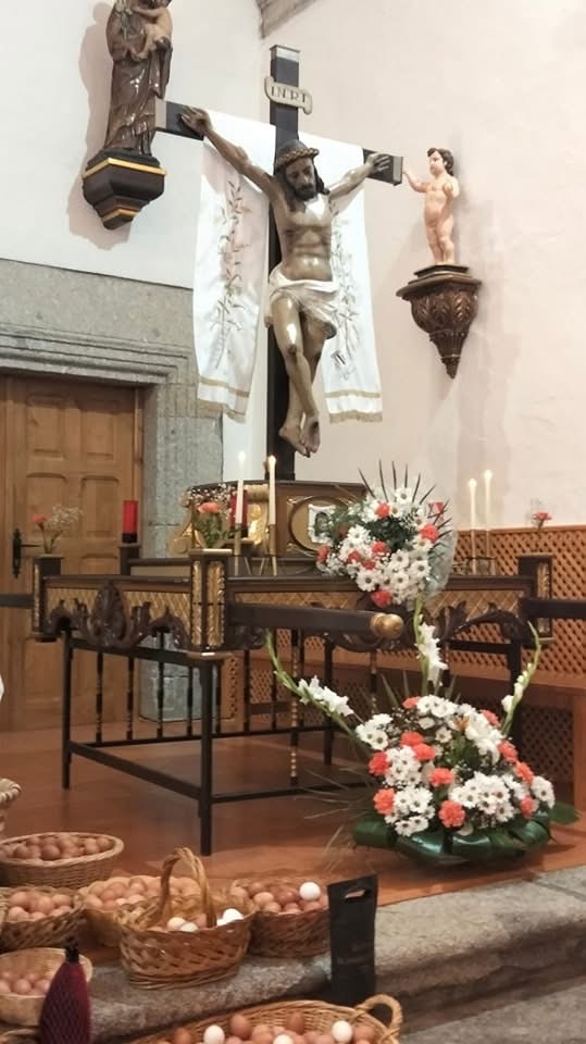 Los vecinos de Fuenterroble no faltaron a la tradicional cita del Lunes de Pascua, la festividad del Cristo del Socorro, al que ofrecieron 514 docenas de huevos, además de otros productos locales, que participaron en la posterior subasta, donde se fijó el precio de 5 euros la docena y media.