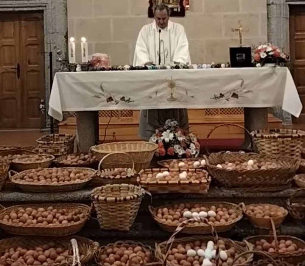 Los vecinos de Fuenterroble no faltaron a la tradicional cita del Lunes de Pascua, la festividad del Cristo del Socorro, al que ofrecieron 514 docenas de huevos, además de otros productos locales, que participaron en la posterior subasta, donde se fijó el precio de 5 euros la docena y media.