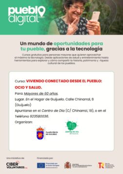 Por otra parte, les recordamos que aún quedan plazas para el curso ‘Viviendo conectado desde el pueblo: ocio y salud’ que se impartirá del 12 al 15 de mayo en el Hogar del Jubilado de Guijuelo y está destinado a mayores de 60 años.
