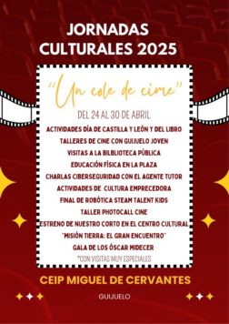 Las jornadas culturales ya han arrancado en el colegio Miguel de Cervantes de Guijuelo, bajo el título de este 2025, ‘Un cole de cine’ los alumnos de todos los cursos participan en diferentes propuestas relacionadas con el mundo del celuloide.